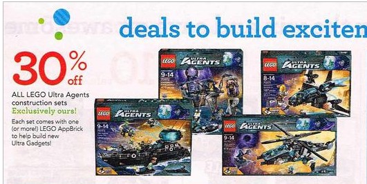 Below is a screenshot of Black Friday deal that Toys R Us is offering this year. Nothing wrong with getting 30% off any set. I personally like the Ultra Agents theme. The 70173: Ultra Agents Ocean HQ is a really slick looking boat and if you can grab that for $70, not a bad considering it is sold out right now on LEGO S@H.