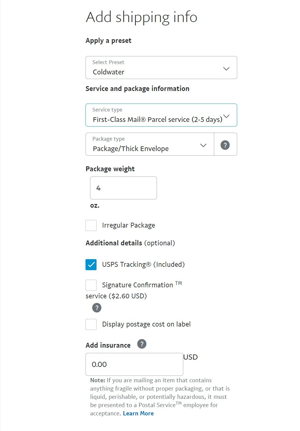 UPS is now dropped as well as the usps first class.